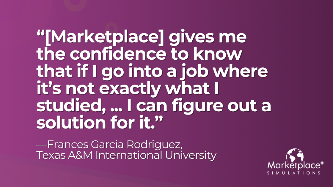 What stood out most to Frances was the way the simulation surfaced everything she had learned throughout her education in accounting, marketing, finance, and operations.