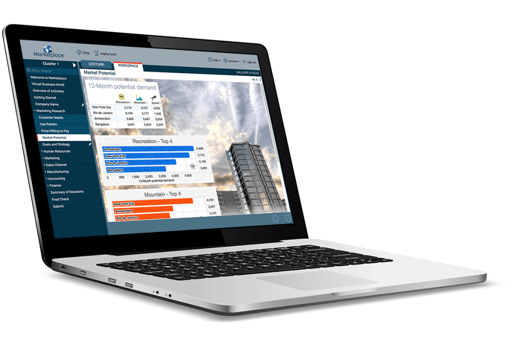 Unsere Unternehmensplanspiele setzen durch den direkten Wettbewerb neue Maßstäbe. Während sie ihre Unternehmen aufbauen, schaffen Studierende im Grundstudium und im MBA-Programm einen einzigartigen Markt. Sie fordern sich gegenseitig mit klugen, überraschenden Entscheidungen heraus. Um die Nase vorn zu haben, werden die Kursteilnehmer ganz natürlich ihre Fähigkeiten verbessern und die wichtigsten Geschäftsprinzipien verinnerlichen.